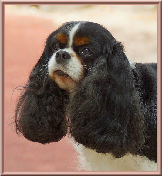 2.5 ans - Jolie chienne avec une expression féminine et douce - Exc. stop - chanfrein bien rempli - Oreilles bien placées et bien frangées - Narines bien ouvertes - Exc. denture - Dos solide - Bonne forme de côte et exc. poitrine - Coudes bien placés et jolis pieds - Angulations correctes - Marche avec une excellente poussée arrière - Croupe très légèrement fuyante - Bonne présentation. Classe champion